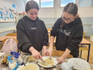 Osim kulinarskih aktivnosti, zadrugari su se okušali u heklanju, gdje su s velikim zanimanjem i strpljenjem učili osnovne tehnike te izrađivali prve jednostavne uratke. Radionice su protekle u ugodnoj i poticajnoj atmosferi, a učenici su pokazali kreativnost, marljivost i spremnost na učenje novih vještina.