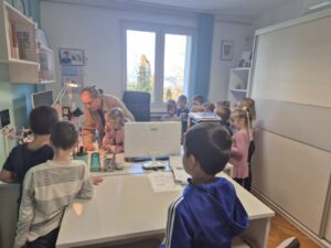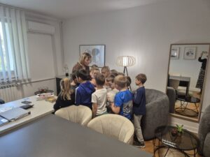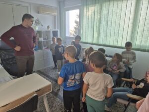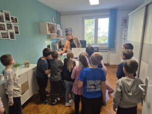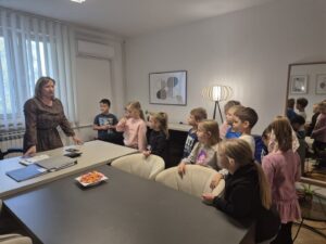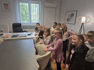 Prvašići su posjetili djelatnike škole u njihovim radnim prostorima. Kroz ugodan razgovor, učenici su ponovili i utvrdili znanja o poslovima koje pojedini djelatnici obavljaju, što je posjetu učinilo poučnom i iznimno zabavnom.