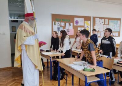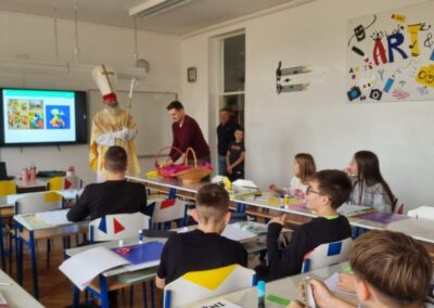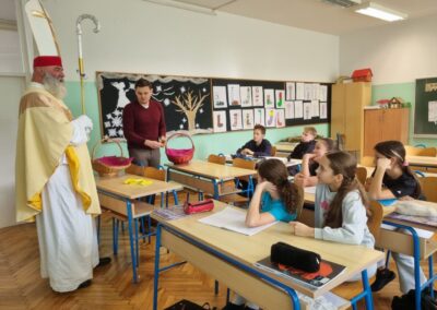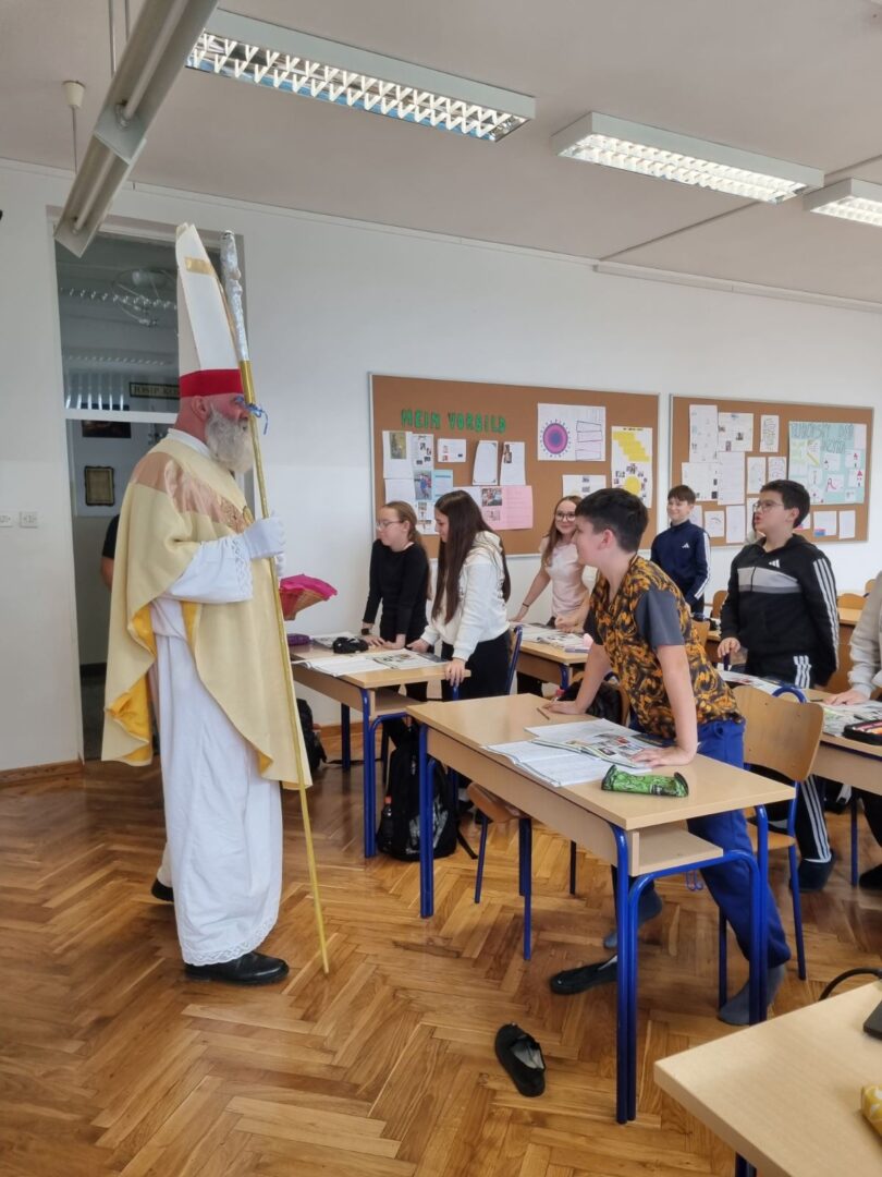 Sveti Nikola ponovno je razveselio učenike naše matične i područnih škola svojim tradicionalnim posjetom, donoseći im toplinu i vedrinu uoči blagdana. Djecu je darivao slatkišima, a cijela škola bila je ispunjena uzbuđenjem dok su ga mališani nestrpljivo iščekivali.
