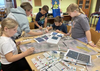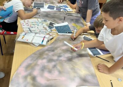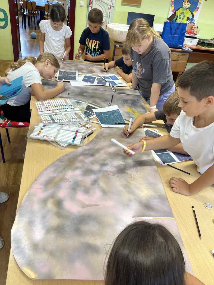 Kroz zanimljivo predavanje polaznici su proširili svoje znanje o svemiru, a potom su kroz crtanje i slikanje nebeskih tijela osmislili scenografiju inspiriranu beskrajem svemira. Na taj su način upoznali i kreativni proces kojim suvremeni umjetnici prolaze – od prve ideje pa sve do završne realizacije.