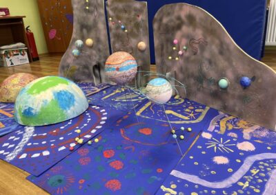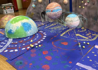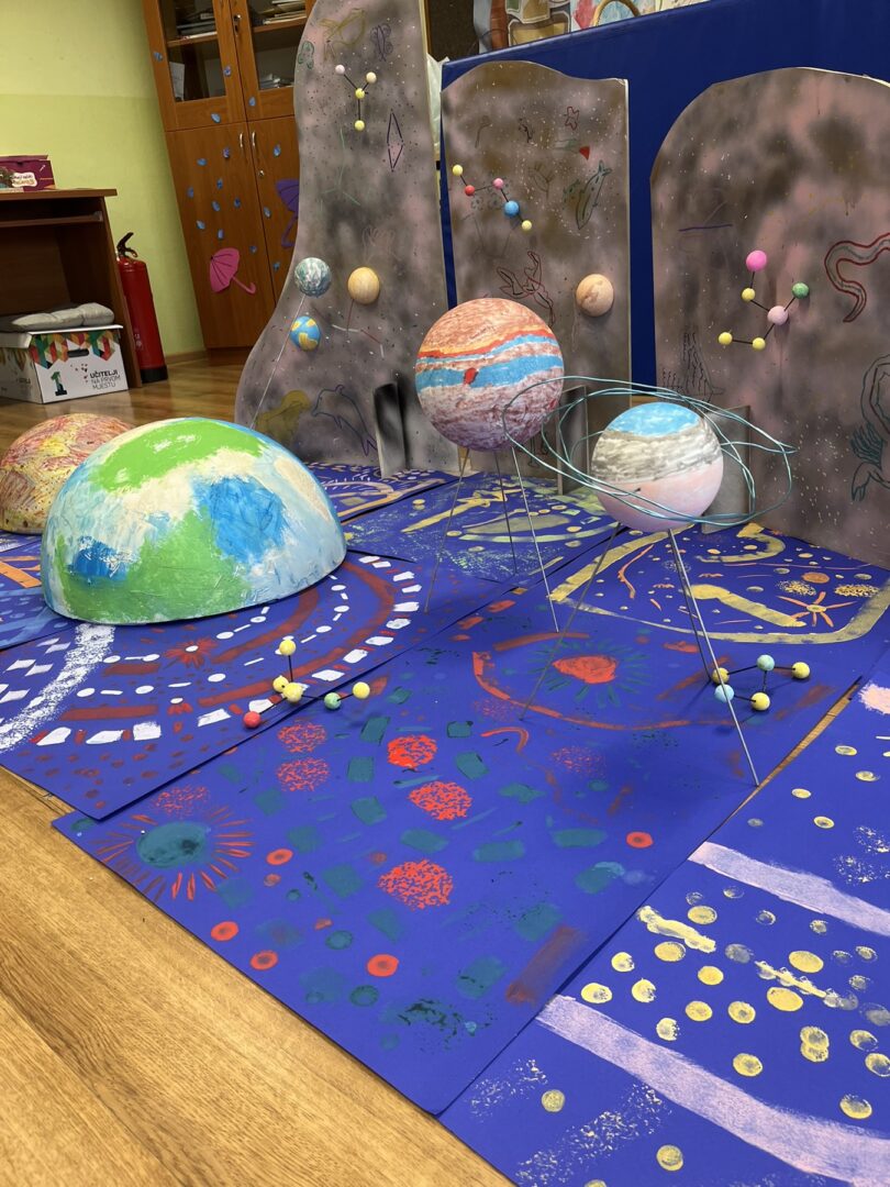 Motiv radionice bila je izrada umjetničke instalacije nadahnute planetima i zvijezdama, a cijeli proces vodila je voditeljica Nina Bešlić Ruk.
