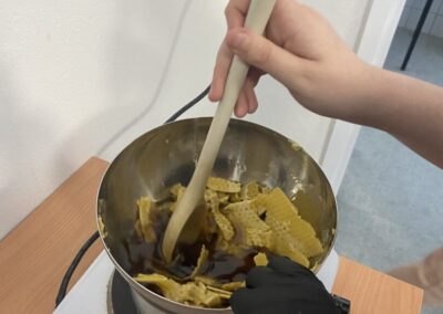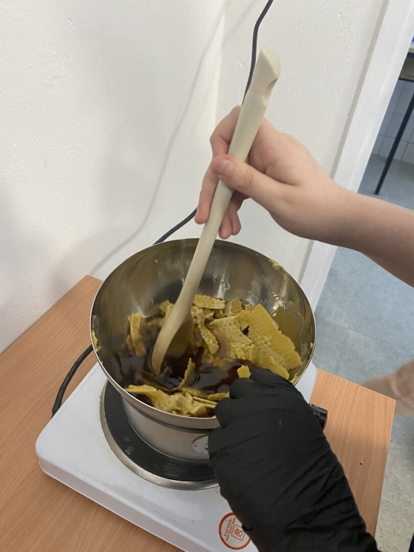 Po povratku u školu učenici su sudjelovali i u radionici izrade svijeća od pčelinjeg voska. Vlastitim su rukama izrađivali svijeće te se upoznali s još jednim vrijednim pčelinjim proizvodom.