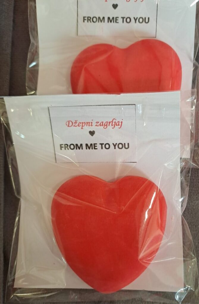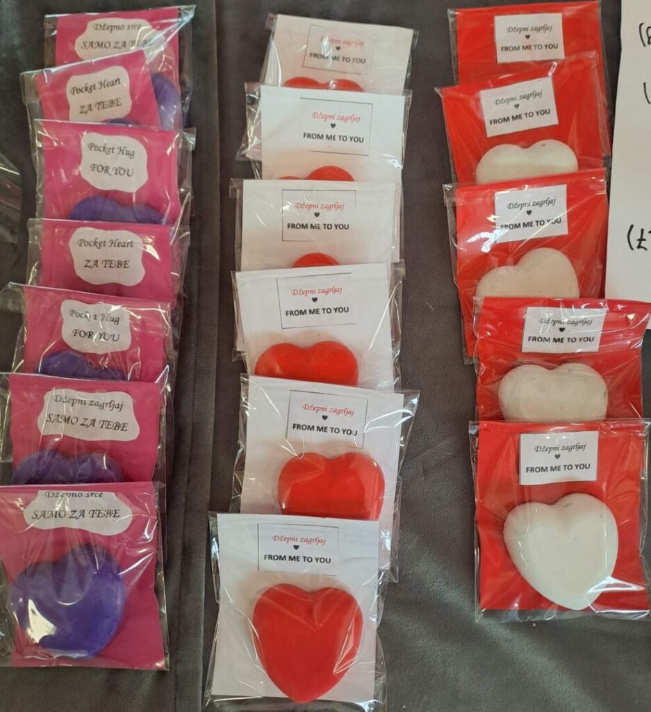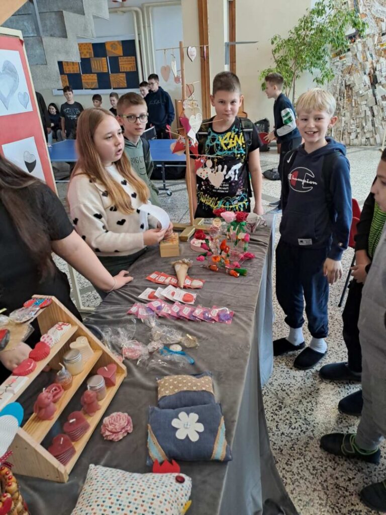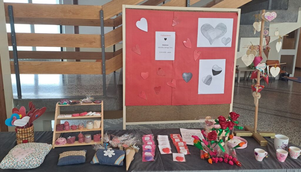 Posebno su se istaknuli naši vrijedni zadrugari koji su svojim trudom i maštom izradili mnoštvo prigodnih rukotvorina. Nastale su prekrasne ljubavne figurice od gipsa, nježni cvjetovi od papira, mekani jastučići s motivima srca te oslikane šalice s romantičnim porukama. Uz to, učenici su izrađivali mirisne sapune u obliku srca, dekorativne svijeće i razne privjeske koji su dodatno uljepšali školski prostor.