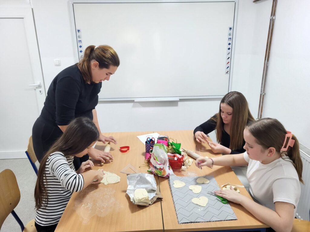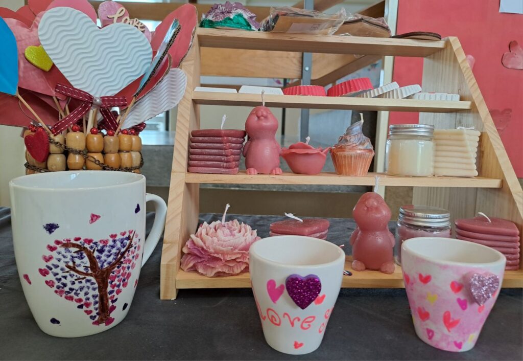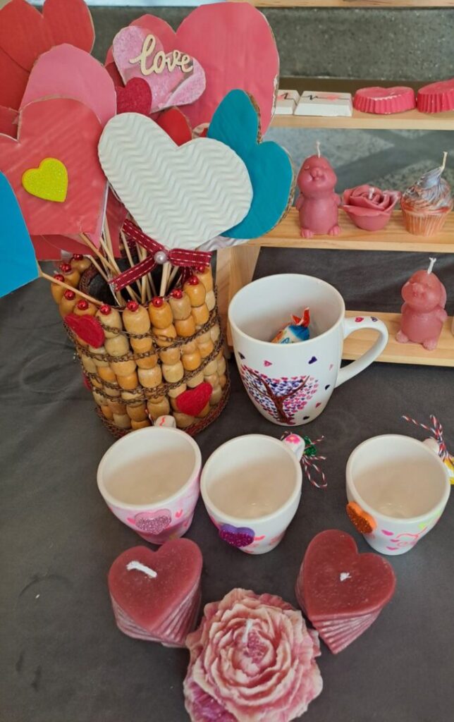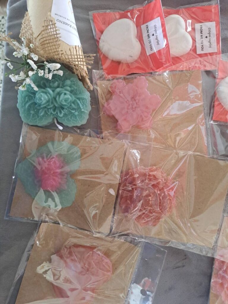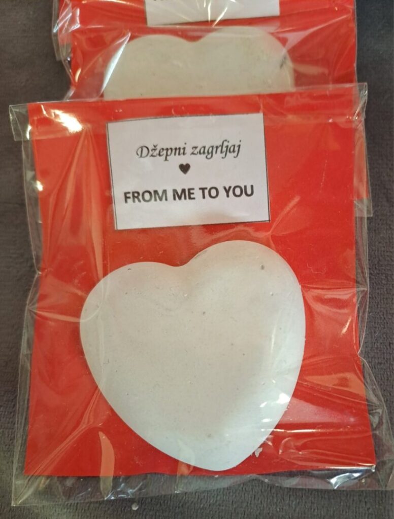 Posebno su se istaknuli naši vrijedni zadrugari koji su svojim trudom i maštom izradili mnoštvo prigodnih rukotvorina. Nastale su prekrasne ljubavne figurice od gipsa, nježni cvjetovi od papira, mekani jastučići s motivima srca te oslikane šalice s romantičnim porukama. Uz to, učenici su izrađivali mirisne sapune u obliku srca, dekorativne svijeće i razne privjeske koji su dodatno uljepšali školski prostor.